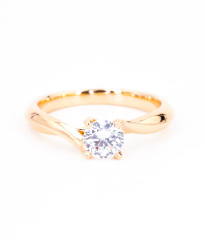 « Ce modèle a été un challenge pour moi : comment apporter ma touche à un modèle classique, connus de tous et déjà mainte fois vu ? J’ai décidé de garder les fondamentaux pour ne pas déboussoler ni perdre l’esthétisme général. La pierre de centre est ainsi sertie de quatre griffes dites « boules » épaulée de deux diamants ronds eux aussi sertis griffes. Le corps, jonc section coussin apporte rondeur et confort sur le doigt.