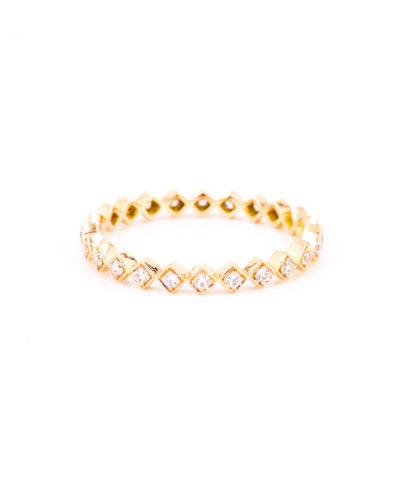 L’idée des motifs géométriques a rapidement vu le jour, car ils permettent facilement de s’emboîter les uns aux autres, tout en restant discrets sur le doigt. Nous avons ensuite travaillé sur le pavage diamants, tantôt absent, semi-présent ou complètement assumé.