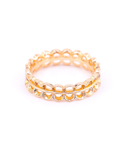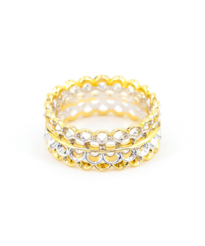 Bague Dentelles cinq rangs diamants or blanc et jaune