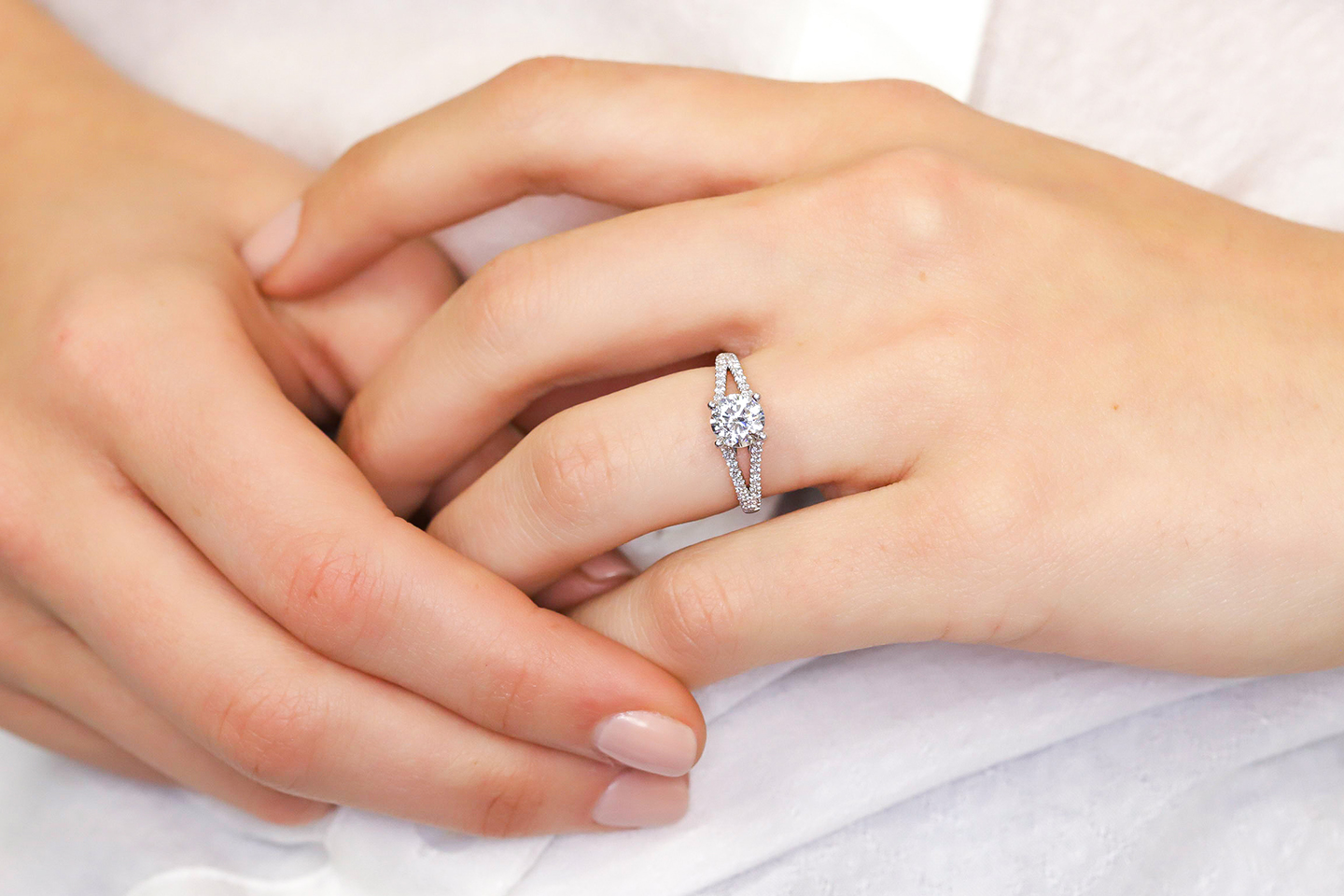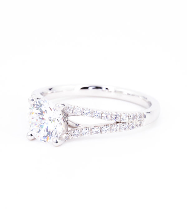 J’ai donc conservé le corps double, qui peut être pavé diamants ou lisse, un chaton de centre complètement ouvert pour laisser la pierre capter un maximum de lumière, puisqu’après tout, elle est le cœur de la bague !